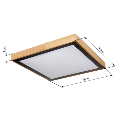 Stropné svietidlo, kov čierny, drevo hnedé, akryl biely, DxŠxV:390x390x90mm, vrátane LED 24W 230V, 2