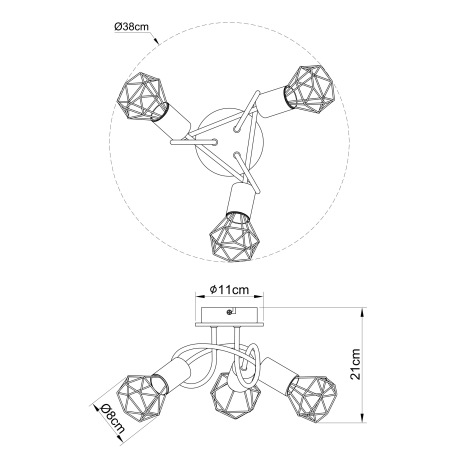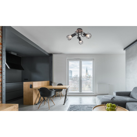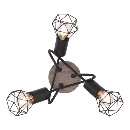 Stropné svietidlo, kov čierny, drevo hnedé, Ø:380, V:210, bez žiaroviek 3xE14, max. 40W 230V