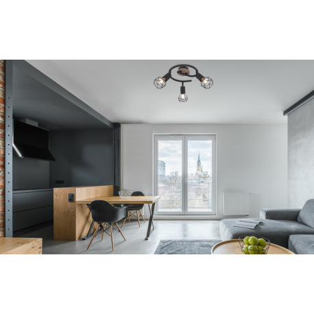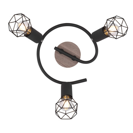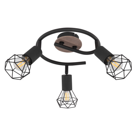 Stropné svietidlo, kov čierny, drevo, kov čierny, Ø230, V:215 bez žiaroviek 3xE14, max. 40W 230V