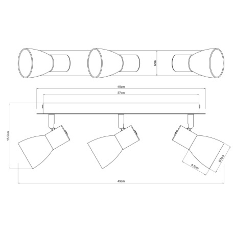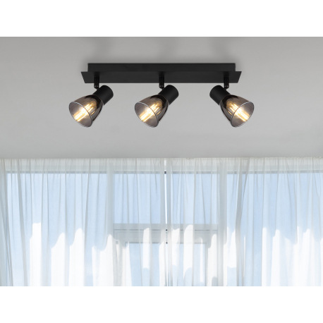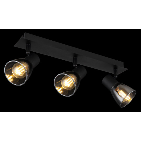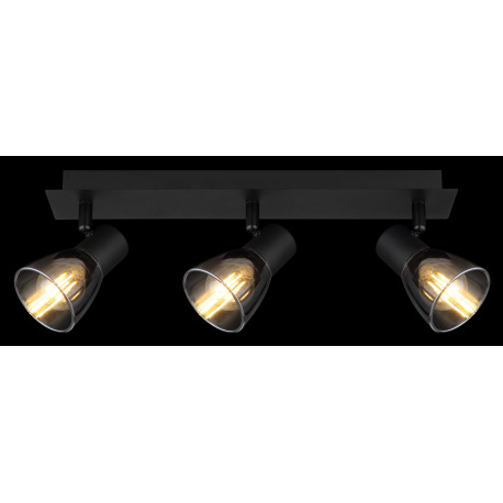 Stropné svietidlo, kov čierny, dymové sklo, DxŠxV:400x70x155mm, bez žiaroviek 3x E14, max. 40W 230V