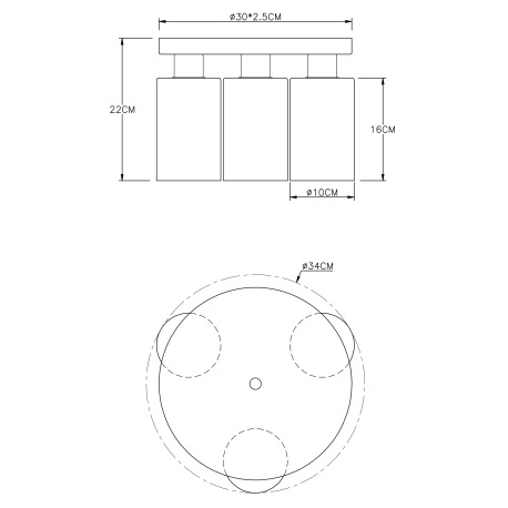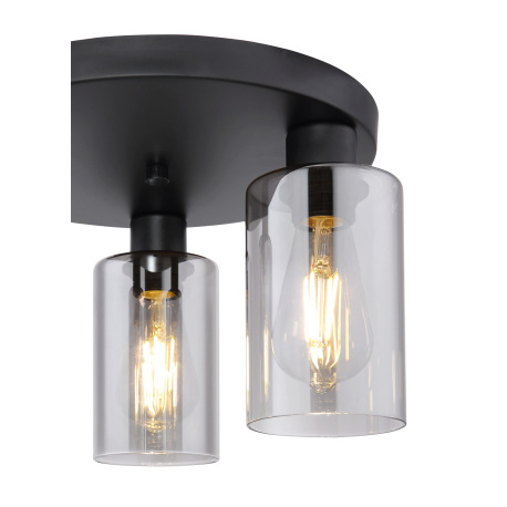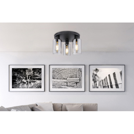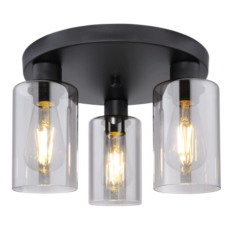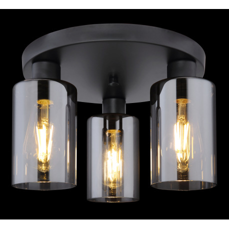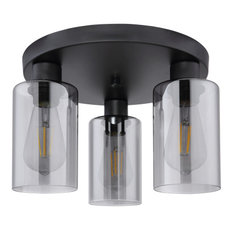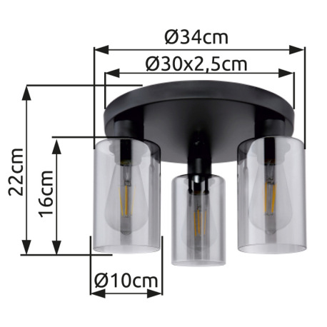 Stropné svietidlo, kov čierny, dymové sklo, Ø 340, V: 220, bez žiaroviek 3xE27, max. 60W 230V