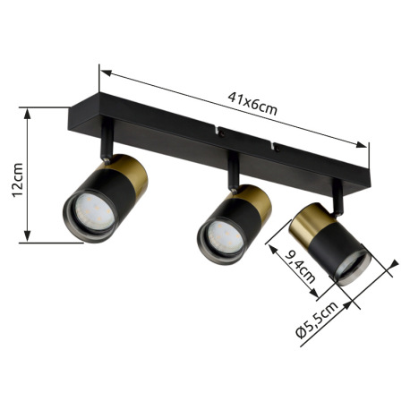 Stropné svietidlo, kov čierny, hliník medený a čierny, plast dymový, DxŠxV: 410x60x120mm, bez žiarov
