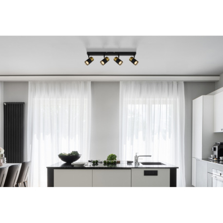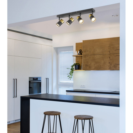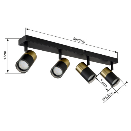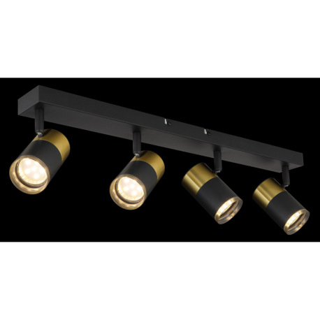 Stropné svietidlo, kov čierny, hliník medený a čierny, plast dymový, DxŠxV: 560x60x120mm, bez žiarov