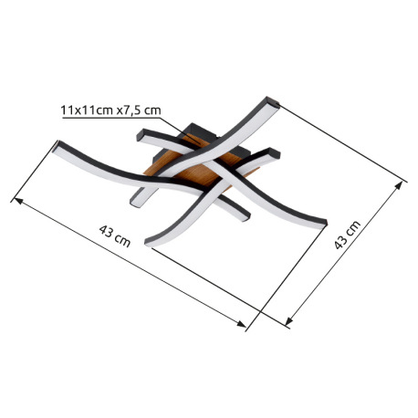 Stropné svietidlo, kov čierny, imitácia dreva, akryl biely, DxŠxV: 430x430x75, vrátane 1xLED 20W 230