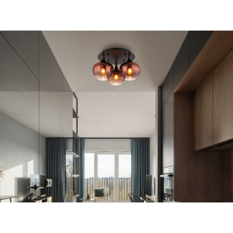 Stropné svietidlo, kov čierny, kov čierny chróm, sklo medenej farby, priehľadné, ø: 450mm, V: 255mm,