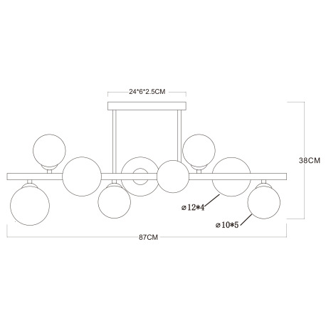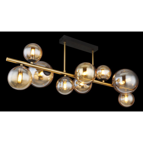 Stropné svietidlo, kov čierny, kov mosadz, sklo jantárové, DxŠxV:870x300x380mm, vrátane 9x G9 LED 3,
