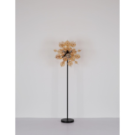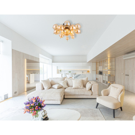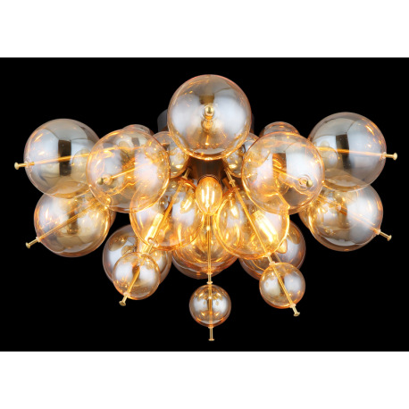 Stropné svietidlo, kov čierny, kov zlatej farby, sklenené gule jantárové, ø: 550 mm, V: 280 mm, skle