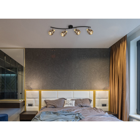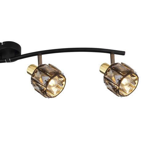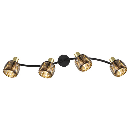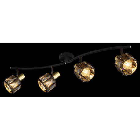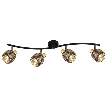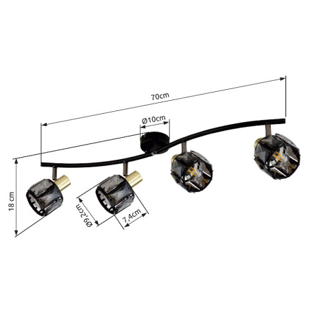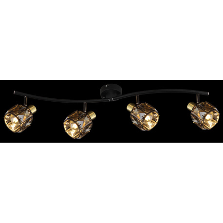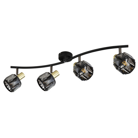 Stropné svietidlo, kov čierny, kov zlatý, sklenené krištále dymové, nastaviteľné, DxŠxV:700x315x180m