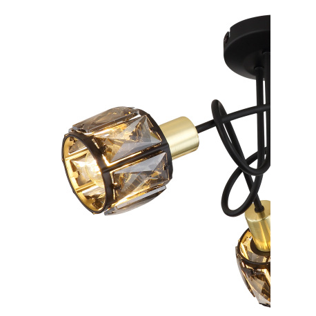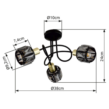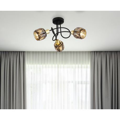 Stropné svietidlo, kov čierny, kov zlatý, sklenené krištále dymové, ø: 380mm, V:240mm, bez žiaroviek