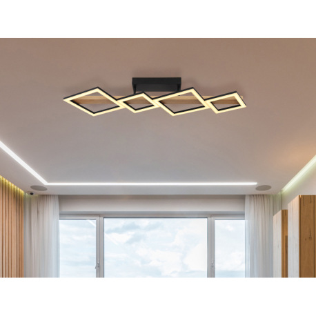 Stropné svietidlo kov čierny mat, MDF imitácia dreva, ABS čierny mat, plast biely, DxŠxV: 920x300x13