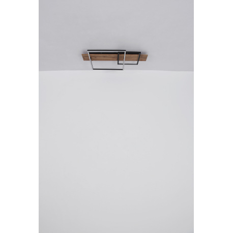 Stropné svietidlo kov čierny mat, MDF imitácia dreva, hliník čierny mat, plast opál, niekoľko úrovní