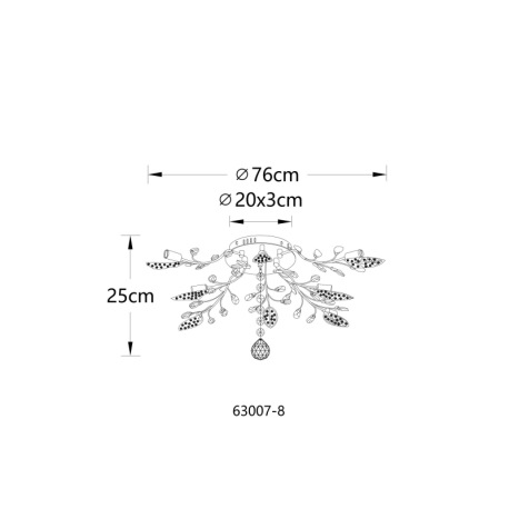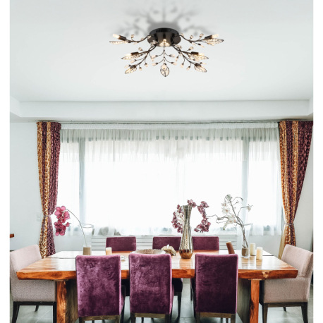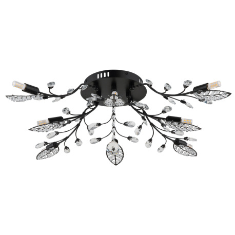 Stropné svietidlo, kov čierny matný, číre akrylové krištále, číry akrylový dekor, ø 760 mm, V: 250 m
