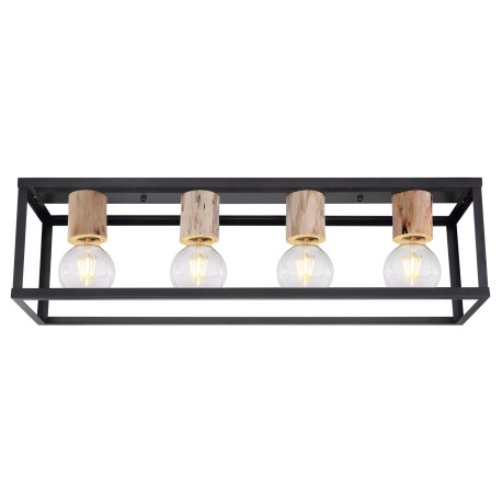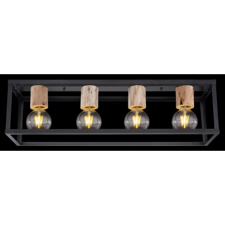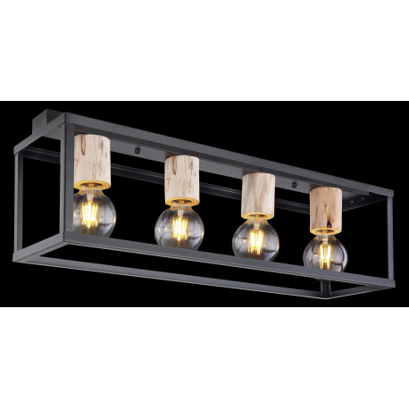 Stropné svietidlo, kov čierny matný, drevo, drevené ozdobné objímky, DxŠxV:750x200x225, bez žiarovie