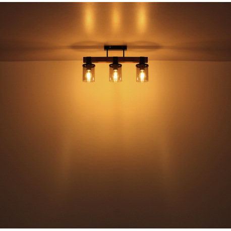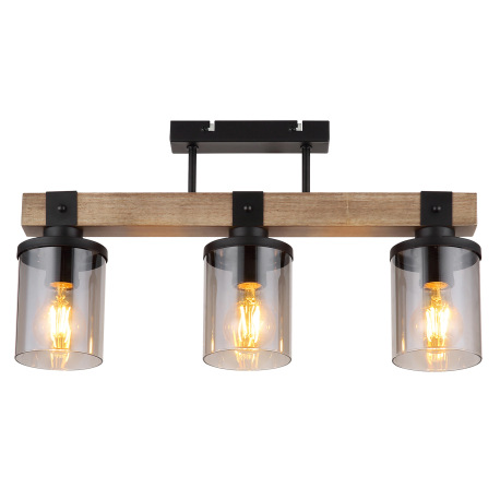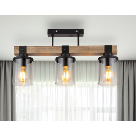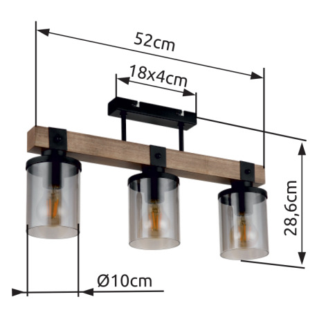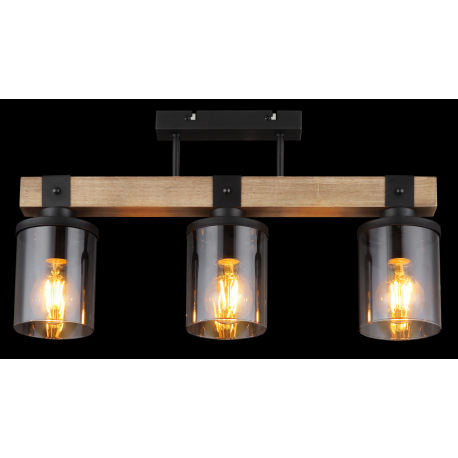 Stropné svietidlo kov čierny matný, drevo tmavohnedé, sklo dymové, kábel PVC čierny, DxŠxV: 520x100x