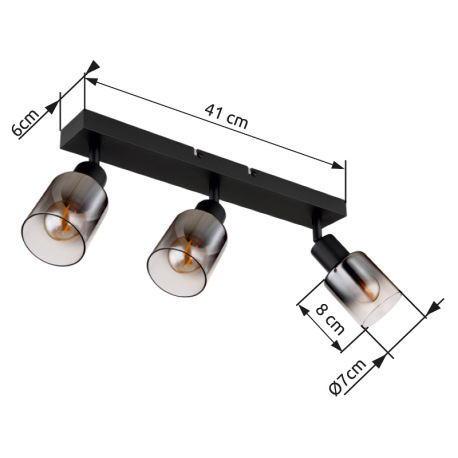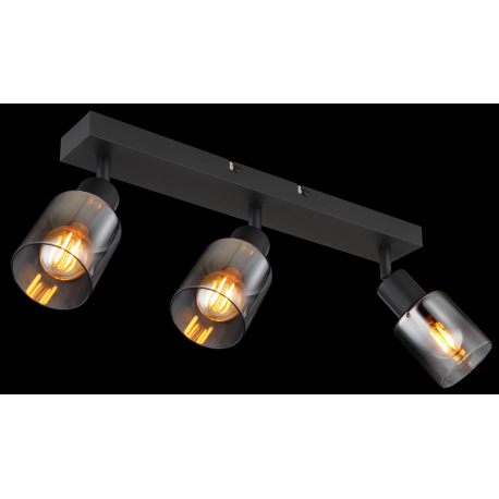 Stropné svietidlo, kov čierny matný, dymové sklo s prechodom do priehľadného skla, DxŠxV: 410x70x140