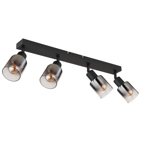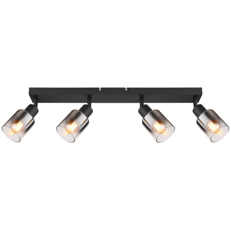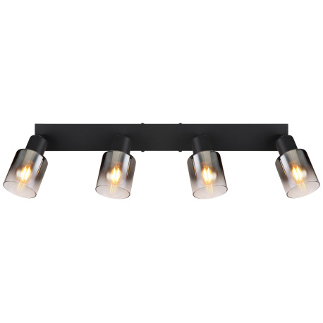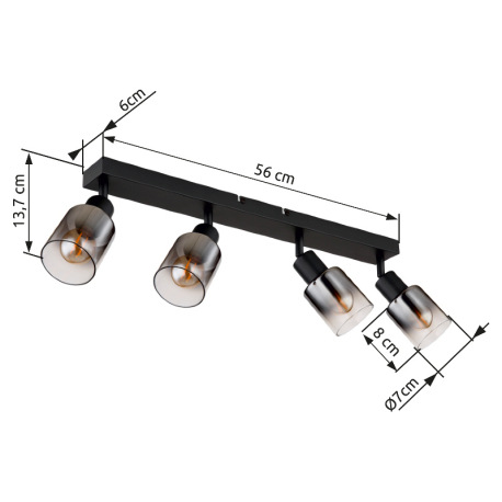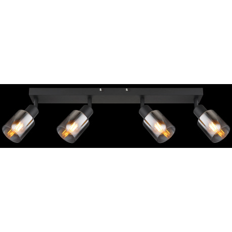 Stropné svietidlo, kov čierny matný, dymové sklo s prechodom do priehľadného skla, DxŠxV: 560x70x140