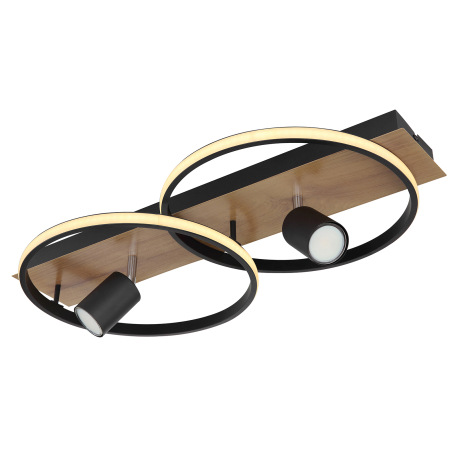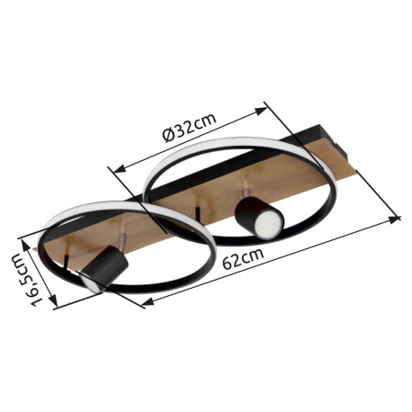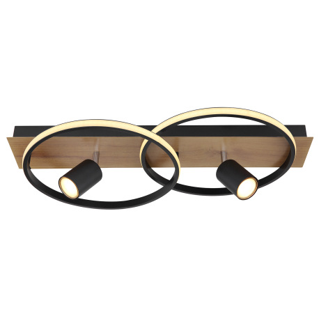 Stropné svietidlo kov čierny matný, imitácia dreva, plast biely, prepínanie funkcií nástenným vypína