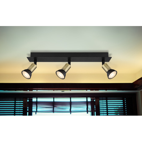 Stropné svietidlo kov čierny matný, kov zlatej farby, DxŠxV: 400x60x90mm, bez žiaroviek 3xGU10 35W 2
