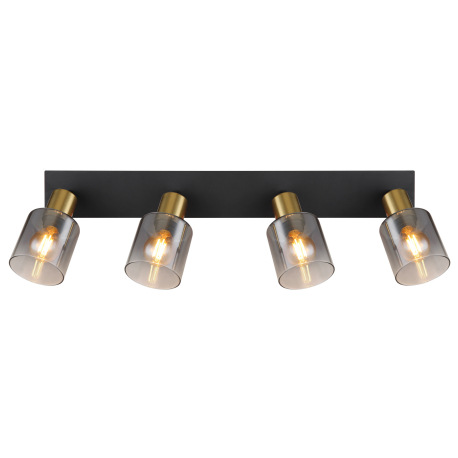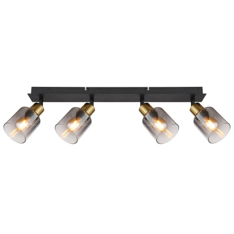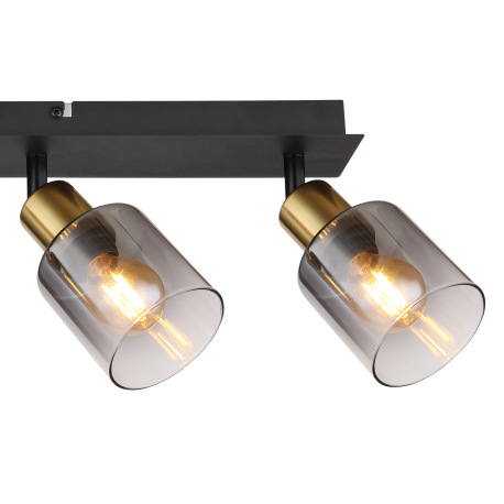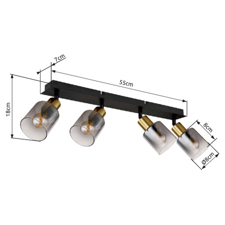 Stropné svietidlo, kov čierny matný, kov zlatý matný, sklo dymové, priehľadné, DxŠxV: 550x80x182mm,