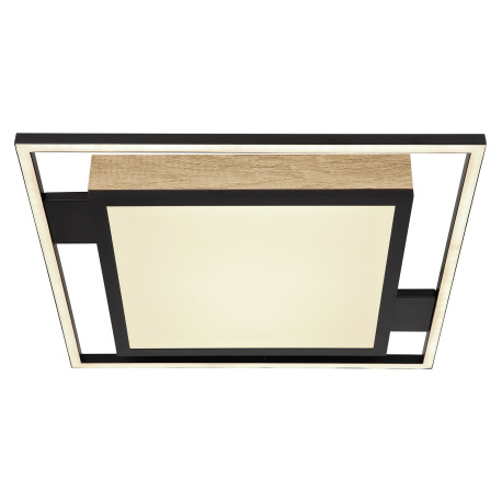 Stropné svietidlo kov čierny matný, MDF imitácia dreva, akryl biely, stmievateľné, niekoľko úrovní p