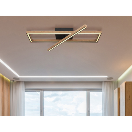 Stropné svietidlo kov čierny matný, MDF imitácia dreva, plast biely, niekoľko úrovní cez nástenný sp
