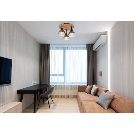 Stropné svietidlo kov čierny matný, MDF, imitácia tmavého dreva, dymové sklo, ø: 380mm, V: 300mm, be