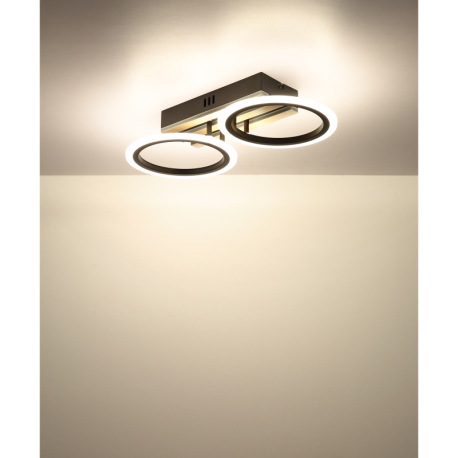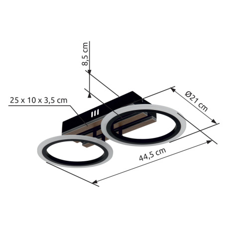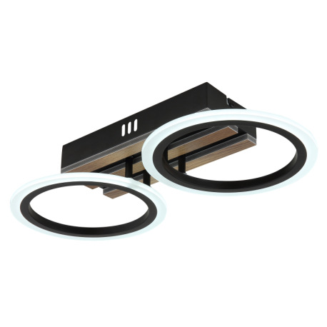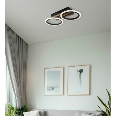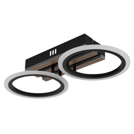 Stropné svietidlo, kov čierny matný, MDF s tmavým dreveným efektom, plast biely, niekoľko úrovní pom