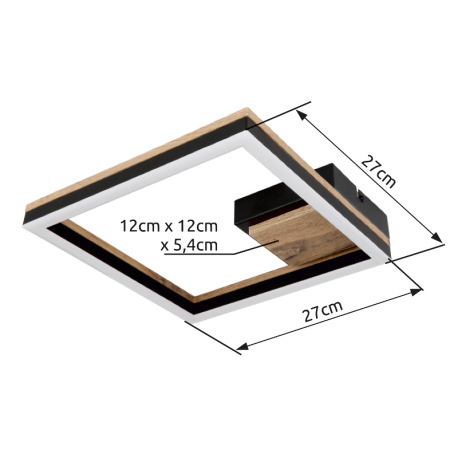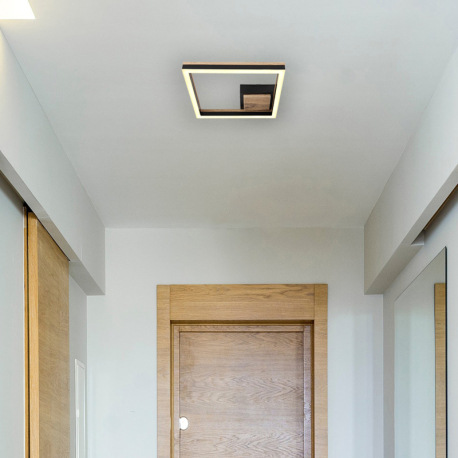 Stropné svietidlo, kov čierny matný, MDF so vzhľadom dreva, plast čierny matný, plast biely, DxŠxV: