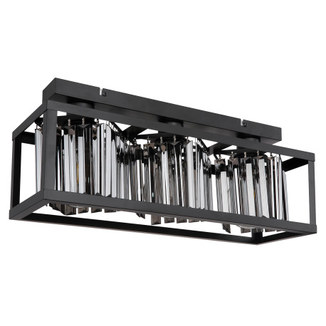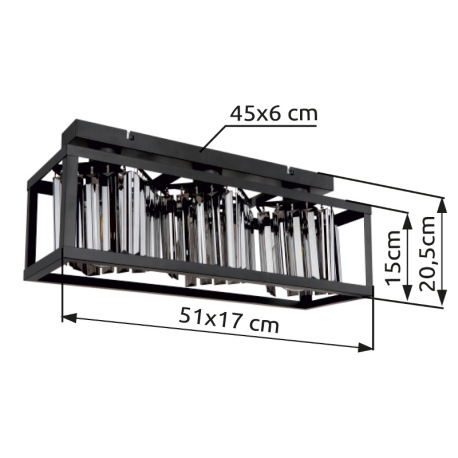 Stropné svietidlo kov čierny matný, sklenené kryštály dymovej farby, DxŠxV: 510x170x205mm, bez žiaro