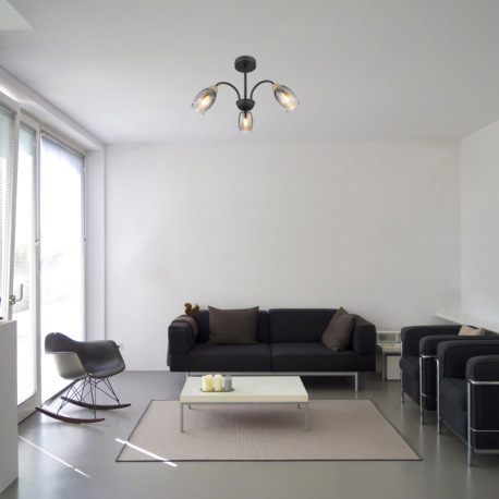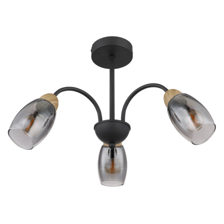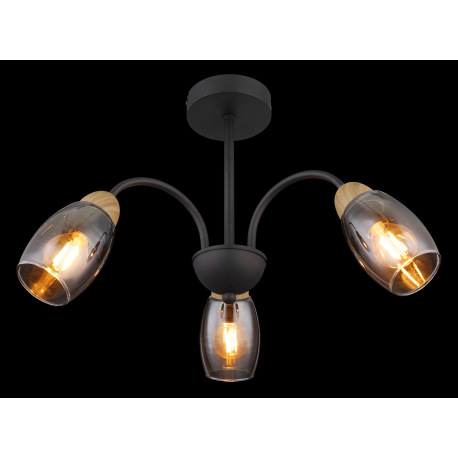 Stropné svietidlo kov čierny matný, sklo dymové, kov imitácia dreva, ø: 470mm, V: 290mm, bez žiarovi