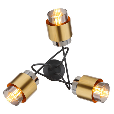 Stropné svietidlo kov čierny matný, sklo dymové, mosadzný krúžok, ø: 500mm, V: 260mm, bez žiaroviek