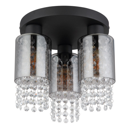 Stropné svietidlo kov čierny matný, sklo dymové, sklenené kryštály číre, ø: 280mm, V: 260mm, bez žia
