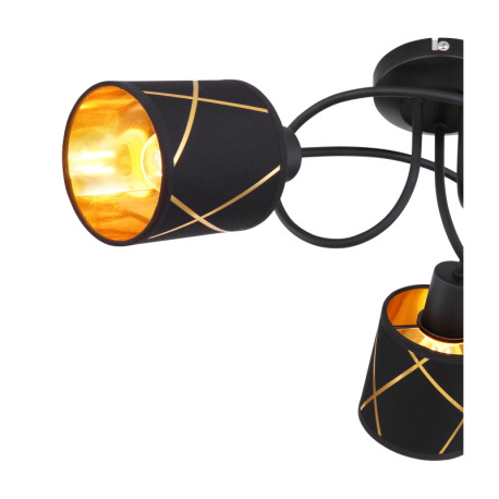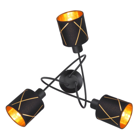 Stropné svietidlo, kov čierny matný, textil čierny, akryl zlatý, Ø:550, V:210, bez žiaroviek 3xE14,