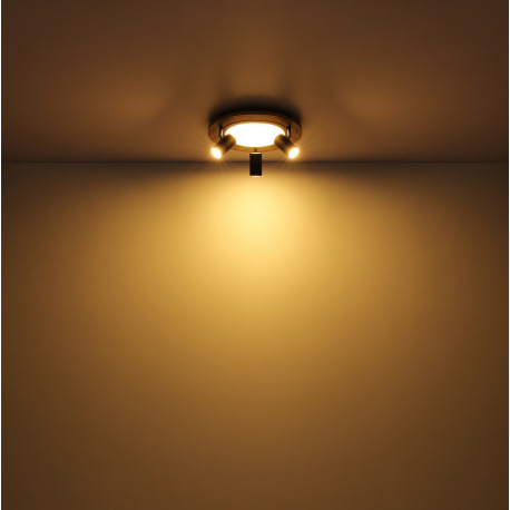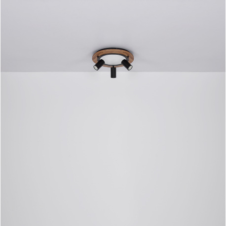 Stropné svietidlo kov čierny, MDF, imitácia tmavého dreva, plast biely, prepínanie funkcií nástenným