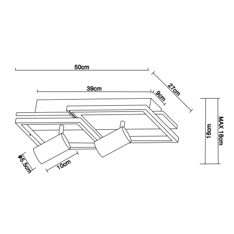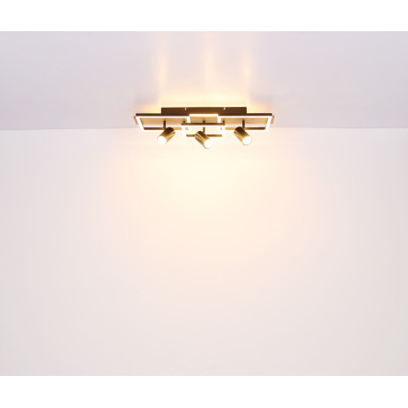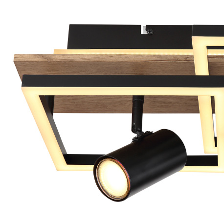 Stropné svietidlo kov čierny, MDF, imitácia tmavého dreva, plast biely, prepínanie funkcií nástenným