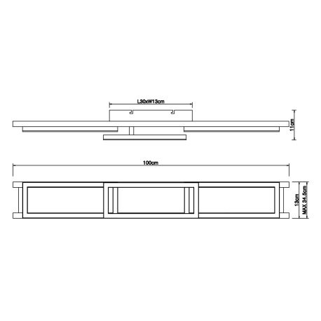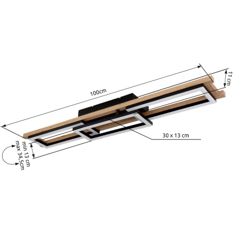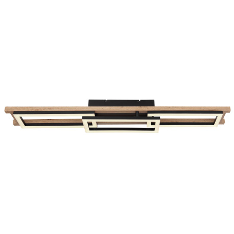 Stropné svietidlo, kov čierny, MDF vzhľad dreva, plast biely, stmievateľné, viackrokové ovládanie ce