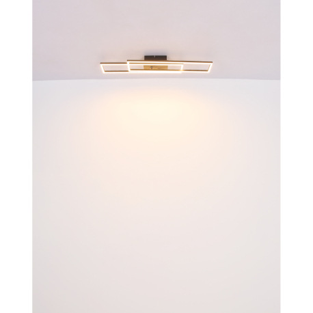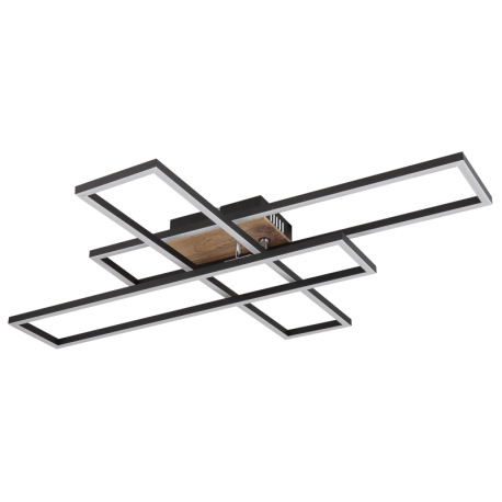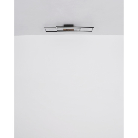 Stropné svietidlo, kov čierny, MDF vzhľad dreva tmavý, hliník čierny, plast biely, chróm, polohovate