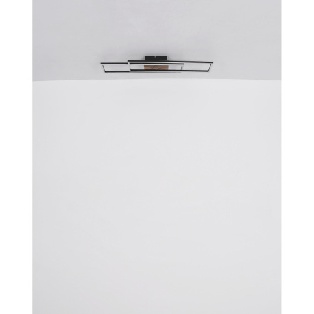 Stropné svietidlo, kov čierny, MDF vzhľad dreva tmavý, hliník čierny, plast biely, chróm, polohovate