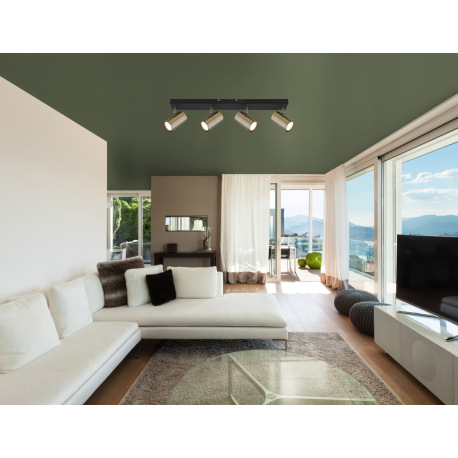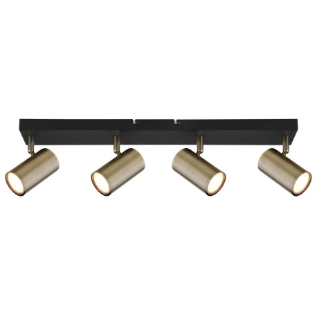 Stropné svietidlo, kov čierny, mosadz, DxŠxV:560x60x120mm, bez žiaroviek 4x GU10, max. 35W 230V