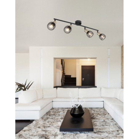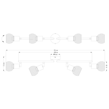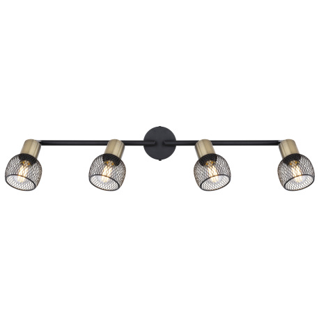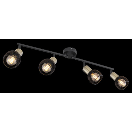Stropné svietidlo, kov čierny, mosadz, tienidlo - kovová mriežka, nastaviteľné, DxŠ:810x110, bez žia
