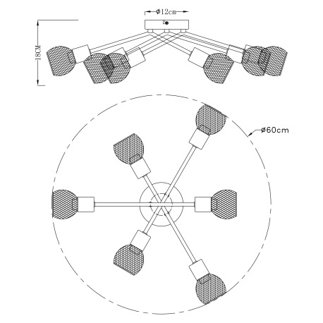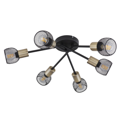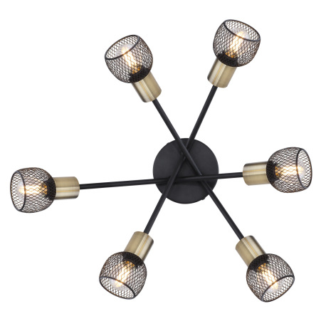 Stropné svietidlo, kov čierny, mosadz, tienidlo - kovová mriežka, Ø 600, V: 180, bez žiaroviek 6xE14