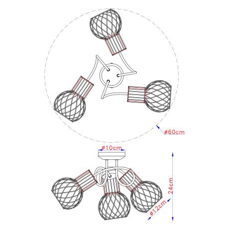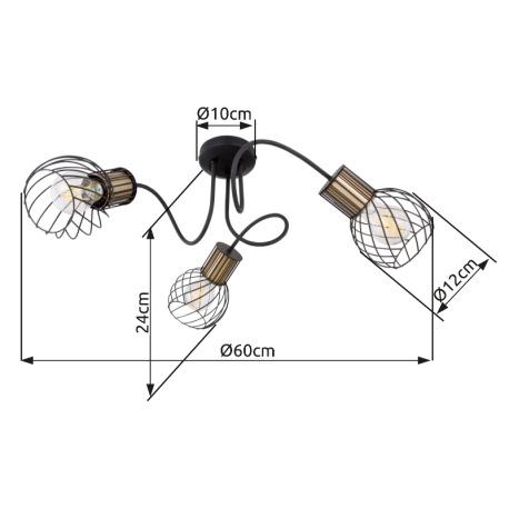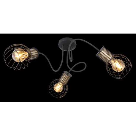 Stropné svietidlo, kov čierny, mosadzný, Ø600, V: 240, bez žiaroviek 3xE27, max. 40W 230V