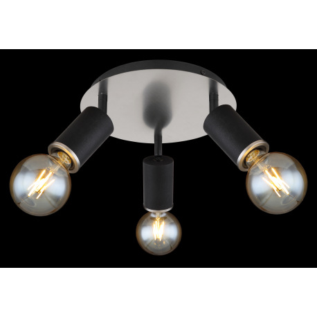 Stropné svietidlo, kov čierny, nikel, drevo čierne, ø: 280mm, V:180mm, bez žiaroviek 3x E27, max. 60