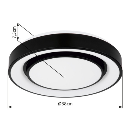 Stropné svietidlo, kov čierny, plast biely,dúhový efekt, pamäťová funkcia, nočné svetlo, stmievateľn