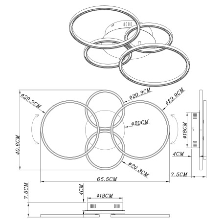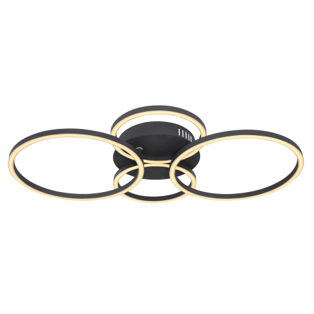 Stropné svietidlo, kov čierny, plast opál, priemer kruhov 2x30cm, 2x20,5cm, DxŠxV: 655x406x75, vráta