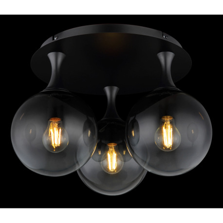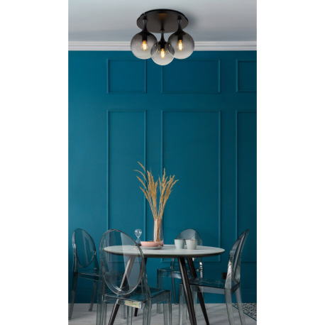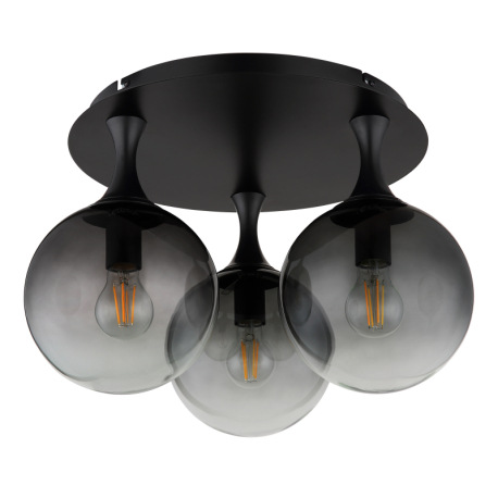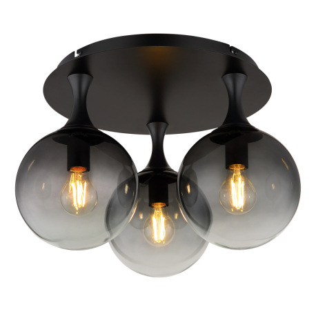Stropné svietidlo, kov čierny, sklenené gule dymovej farby, ø: 460 mm, V: 327 mm, bez žiaroviek 3xE2