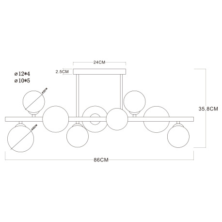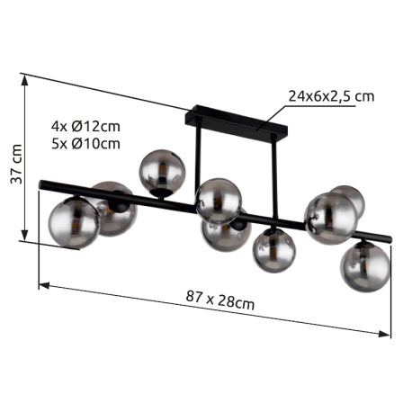Stropné svietidlo, kov čierny, sklo, sklo Ø 4x12cm, 5x10cm, vrátane 10676, DxŠxV: 866x300x358, vráta