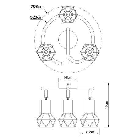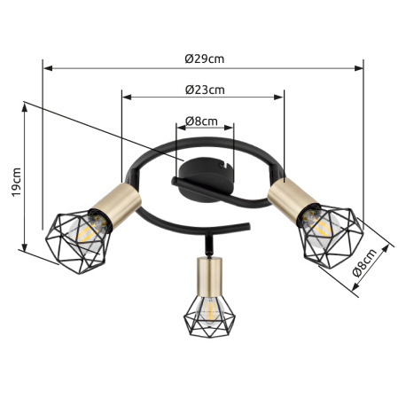 Stropné svietidlo, kov čierny, starožitná mosadz Ø:230, V:190, bez žiaroviek 3xE14, max. 40W 230V