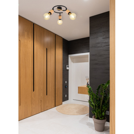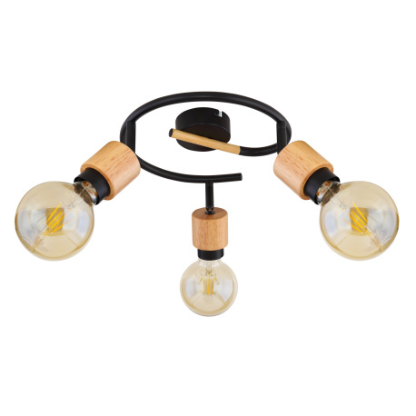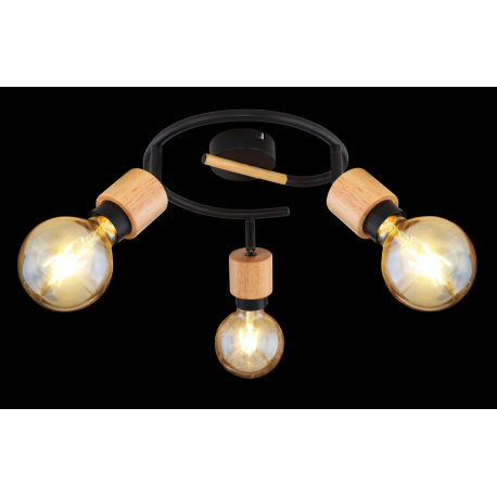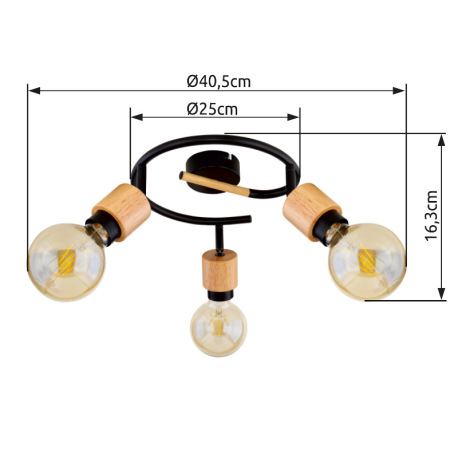 Stropné svietidlo, kov čierny, svetlé drevo, Ø 405, V: 160, bez žiaroviek 3xE27, max. 40W 230V