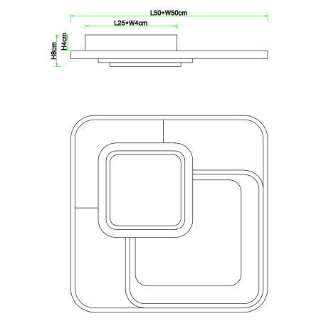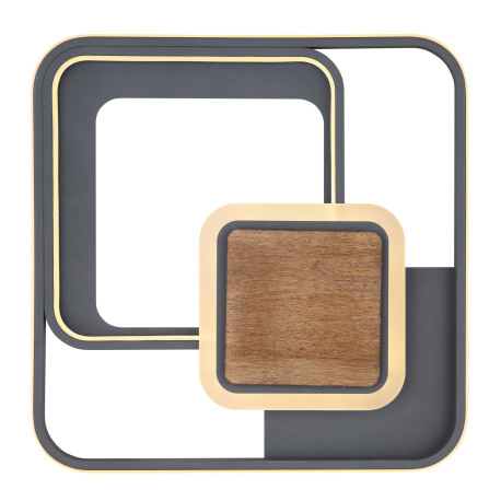 Stropné svietidlo, kov grafit, tmavohnedé drevo, akryl biely, DxŠxV:500x500x80, vrátane 1xLED 48W 23